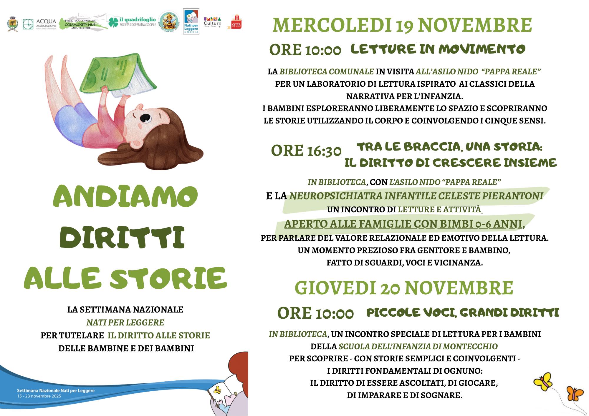 Incontro con i bambini della scuola dell’infanzia di Montecchio per scoprire - attraverso le storie - i diritti fondamentali di ogni bambino: ascolto, gioco, sogno e crescita.